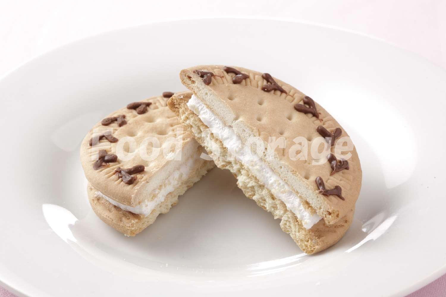 耐熱容器にビスケットを並べてマシュマロを1個ずつのせ、ラップをせずに電子レンジ(600W)で40秒ほど加熱する。マシュマロが熱いうちにもう一枚のビスケットをのせて挟む。