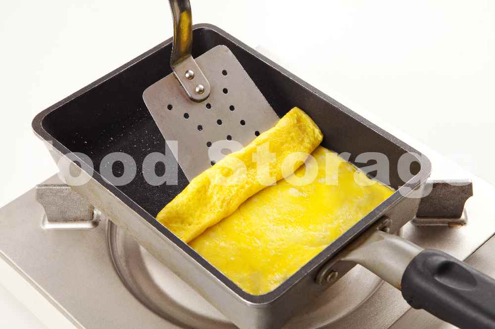 熱した卵焼き器に油を入れ、中火にして①の1/2量を流し入れる。 |