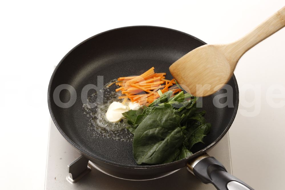 2.【にんじんとほうれん草のごまマヨ炒め】