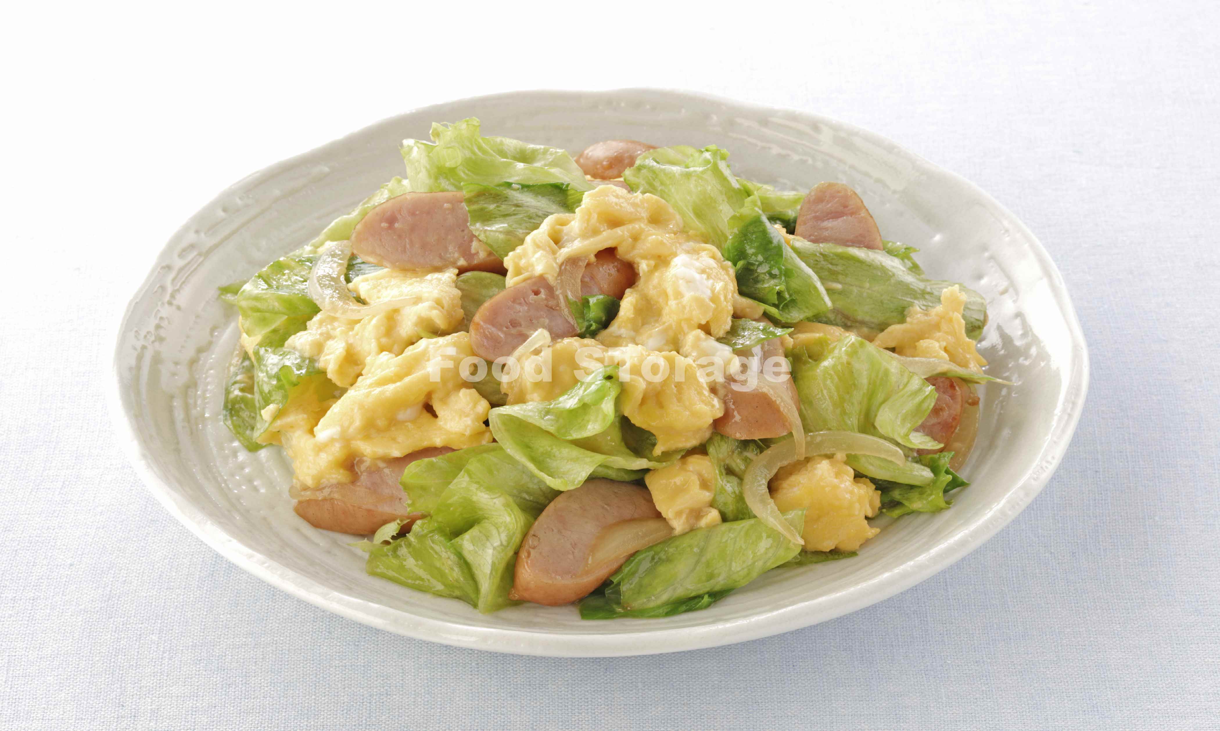 | ウインナーとレタスのバターしょうゆ卵炒め |