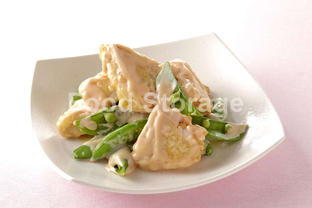 | かじきとスナップエンドウのえびマヨ風 |