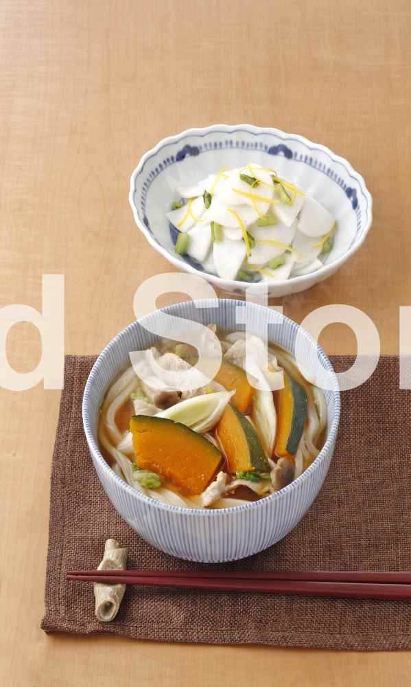 | 【献立】かぼちゃ入りみそ煮込みうどん+かぶのゆず漬け |