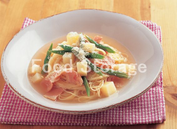 | 【節約】いんげんとじゃがいものスープパスタ |