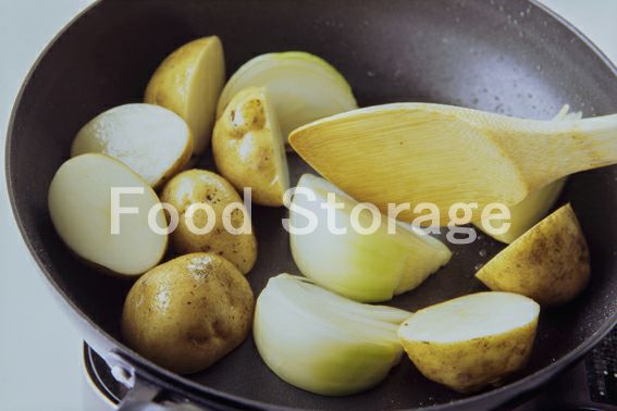 新じゃがはよく洗い、皮つきのまま半分に切って水にさらす。新玉ねぎは4等分のくし形に切る。 |