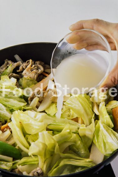 春キャベツはざく切り、スナップえんどうは筋を取って斜め半分に、玉ねぎは1cm幅に切り、たけのこ、にんじんは食べやすい大きさに薄切りする。にんにく、しょうがはみじん切りにする。 |