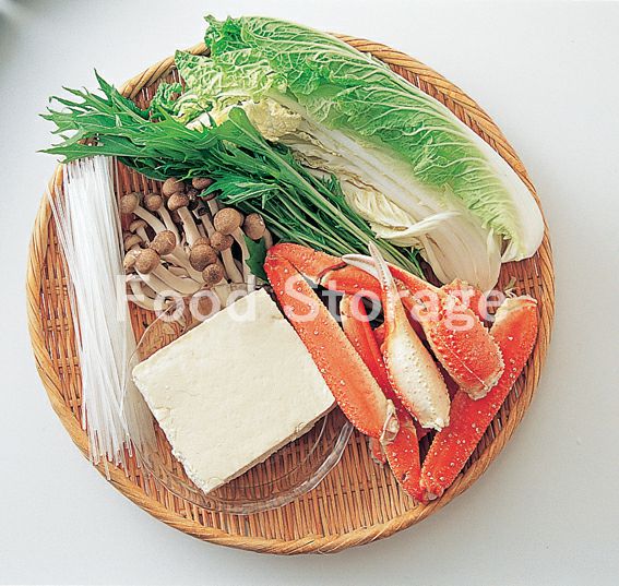 かに足(ずわいがに、またはたらばがに) 白菜 水菜 しめじ) もめん豆腐) くずきり(乾燥)A(昆布 水 酒)ポン酢しょうゆ 薬味(万能ねぎ(小口切り) もみじおろし)