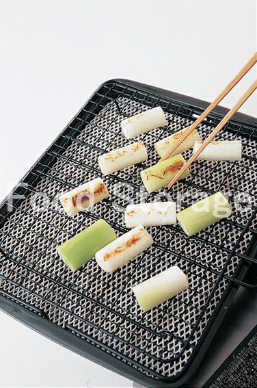 豆腐は8等分に切る。長ねぎは3cm長さに切り、網で焼いて焦げ目をつける。 |