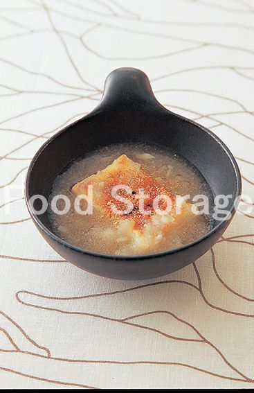 残った煮汁に焼き餅を入れ、さらに大根おろしを加え、煮立ったら器に盛り、七味唐辛子をふっていただく。 |