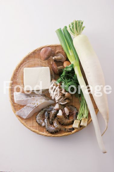 大根 たら(切り身) えび(無頭) 絹ごし豆腐) 長ねぎ しめじ) しいたけ みつ葉 だし汁 A(酒 みりん 塩 薄口しょうゆ)