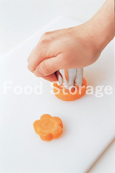 鶏もも肉は一口大に切る。里いもは皮をむいて1cmの輪切りにする。にんじんは輪切りにして抜き型で花形に抜く。 |