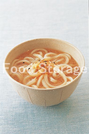 残った煮汁に、ゆでうどんを加えて煮て、器に盛り、七味唐辛子をふっていただく。 |