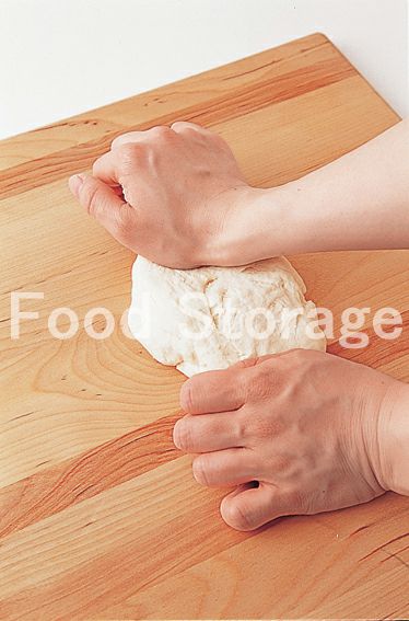 塩と水を合わせて、塩をよく溶かしておく。ボウルに強力粉、薄力粉を合わせてふるい入れ、真ん中に穴を開けて塩水を流し入れる。円を描くようにして混ぜ、ひとまとめになったらボウルから出し、表面がなめらかになるまで10分ほどよくこねる。 |