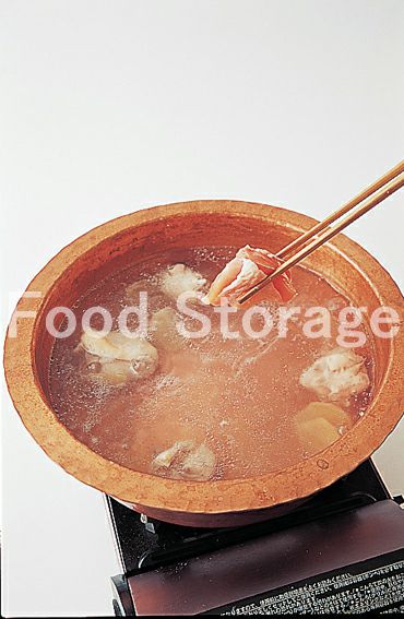 鍋にA、しょうがを入れて火にかけ、沸騰したら鶏肉を加える。再び沸騰したら春菊以外の1を入れて煮る。 |