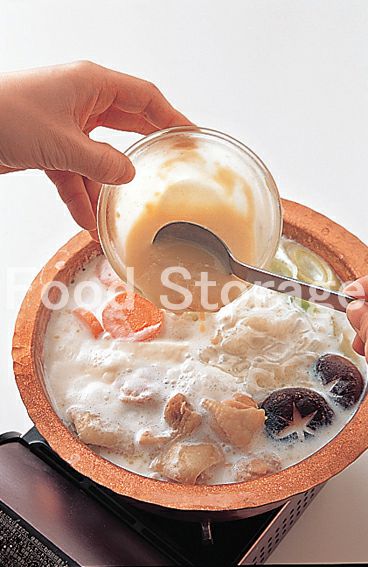 鶏もも肉 絹ごし豆腐) 白菜 春菊 長ねぎ しいたけ にんじん しょうが しらたき A(鶏がらスープ 酒) 牛乳 B(白みそ みそ) 薄口しょうゆ