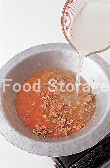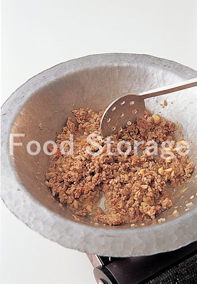 鍋にサラダ油を熱し、1をさっと炒め、豚ひき肉を加えてほぐしながらポロポロになるまで炒める。 |