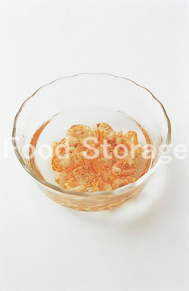 干しえびは分量の湯に漬けて戻す。 |