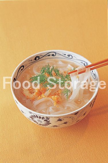 フォーはたっぷりの熱湯で5〜6分ゆで、煮汁に加えて2〜3分煮て、器に盛る。香ばしく揚げたにんにくのみじん切りをのせ、ディルを添える。 |