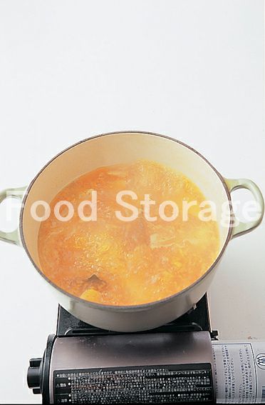 しんなりしてきたらA、じゃがいも、サフランを漬け汁ごと加え、沸騰したら弱火にして10分ほど煮る。