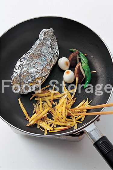 | フライパンで3品を同時に焼く。ホイルがあれば蒸しおかずもフライパンでいっしょに作れます! |