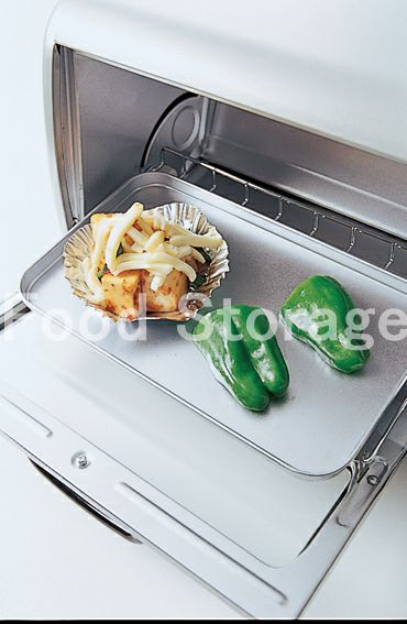 2.ピーマンをオーブントースター天板にのせ、軽く焦げ目がつくまで(約5分)焼く。