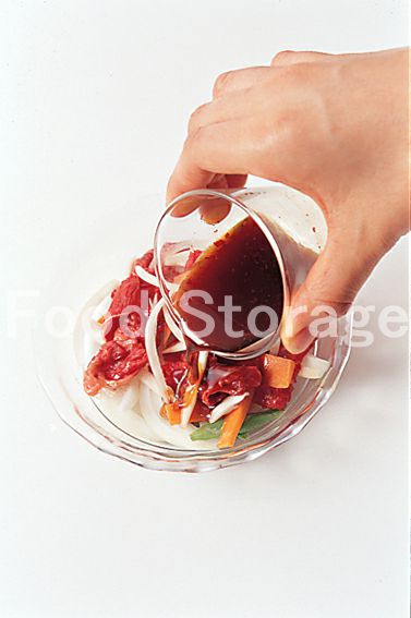 2.耐熱容器に切った材料をすべて入れ、よく混ぜ合わせたAを回し入れる。