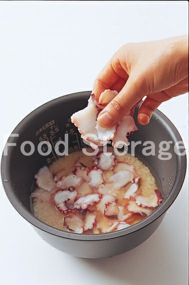 | 米、調味料、ゆでだこを入れて炊飯器で炊くだけだから、とってもかんたん。 |