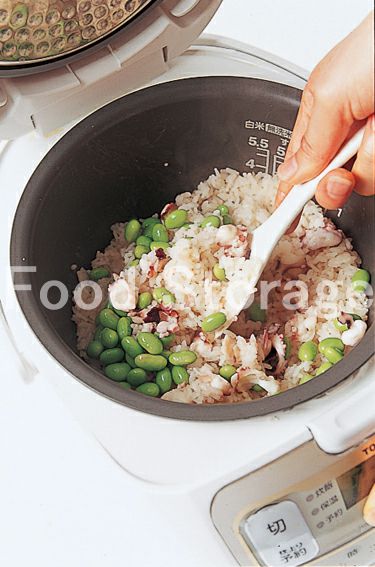 2が炊き上がったら枝豆を加えて混ぜ合わせる。 |