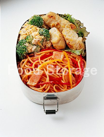 1.ベーコンは1.5cm幅に切る。玉ねぎ、パプリカは薄切りにする。 2.スパゲッティはお弁当箱にいれやすいように半分に折り、袋の表記通りの時間でゆで、ザルにあげて水けをきっておく。 3.フライパンにサラダ油を熱し、ベーコン、玉ねぎ、パプリカを炒め、さらに2を加えて炒める。 4.合わせたAを加えてムラなく炒め合わせる。 |