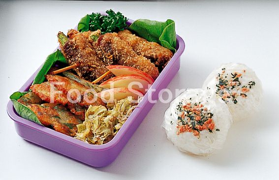 1.グリーンアスパラガスはかたい部分を除いて4等分に切る。牛薄切り肉は半分に切って塩、こしょうをふる。 2.牛肉を広げ、切ったグリーンアスパラガスを2本のせて巻く。同様に3個巻く。 3.お弁当箱に入るくらいの長さに切った竹串に3を2個ずつ刺す。 4.3に薄力粉、溶き卵、パン粉の順に衣をつける。 5.180℃の油できつね色になるまで揚げる。お弁当箱に詰め、お好みでトンカツソース、隙間にりんご(分量外)を添える。 |