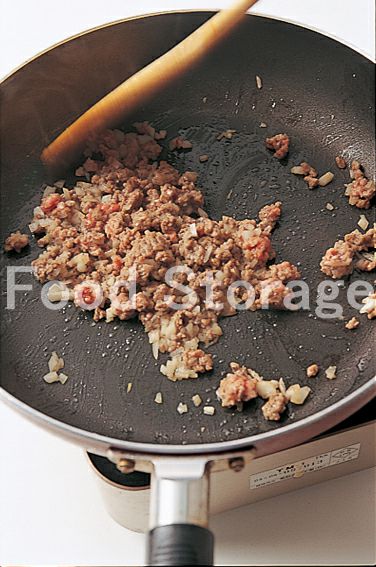 フライパンにサラダ油を熱し、1、牛ひき肉を炒め、塩、こしょうをふる。 |