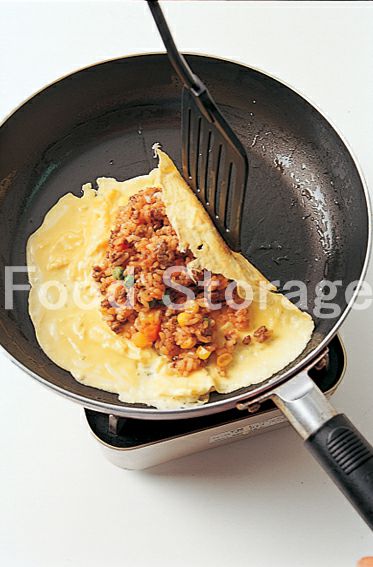 フライパンにサラダ油を熱し、溶き卵を流し入れ、かき混ぜながら半熟状になったら3をのせて巻く。ケチャップをかけていただく。 |