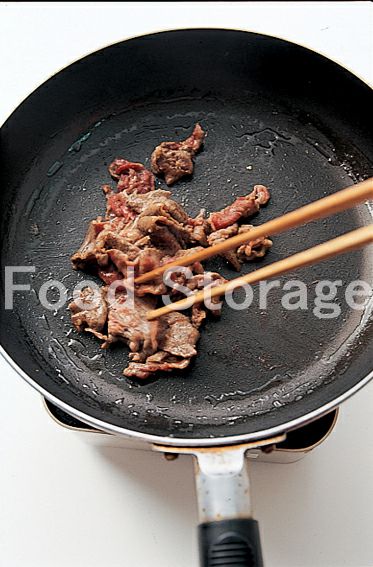 ごはんを弁当箱に詰め、冷ましておく。牛薄切り肉は食べやすい大きさに切る。にんじんは細切りにする。 |