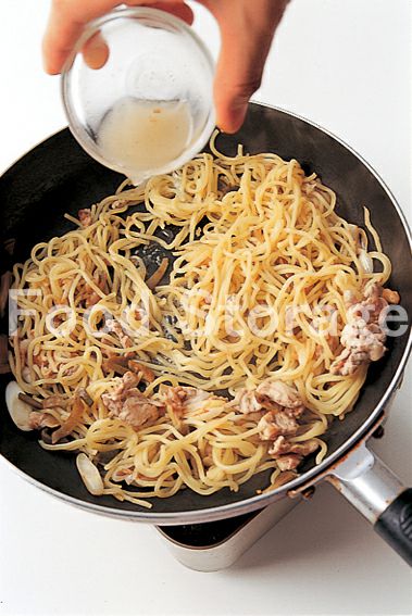 中華麺と、合わせたAを回し入れ、よく炒め合わせる。 |