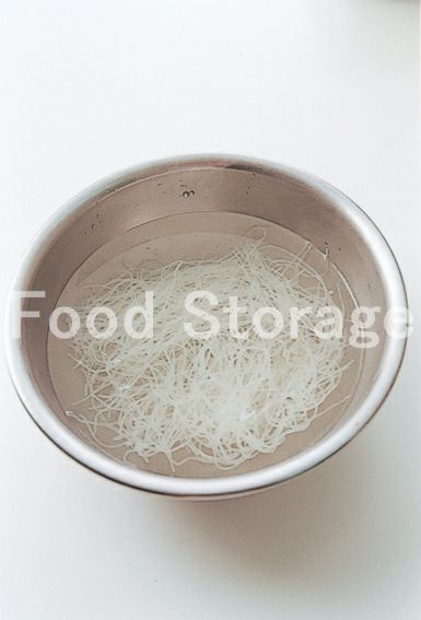 ビーフンをボウルに入れて熱湯を注ぎ、2分ほどおいて戻し、食べやすく切る。 |