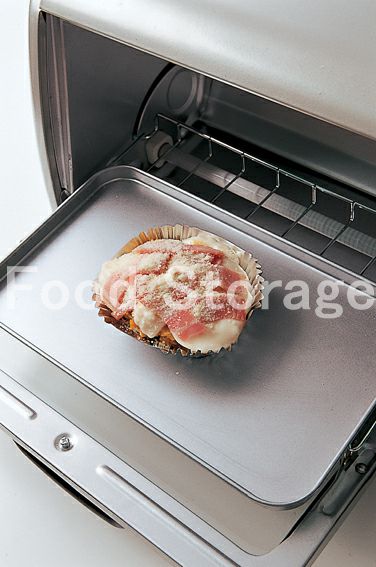 1.5cm幅に切ったベーコンを散らし、合わせたA、粉チーズをかけてオーブントースターで5分焼く。 |