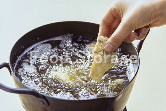 3を180℃に熱した揚げ油でカリッと揚げ、油をきる。 |