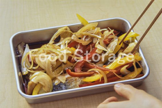 バットに5を広げて入れ、4を加えて混ぜ、15分ほど漬け込む。 |