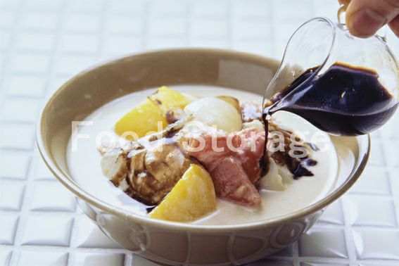 鍋にサラダ油を熱し、2の野菜を炒め合わせ、1、ココナッツミルク、おろししょうがを加えて5分ほど煮る。