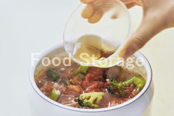 3がしんなりしたらつぶしたホールトマトとAを加え、15分ほど煮る。 |