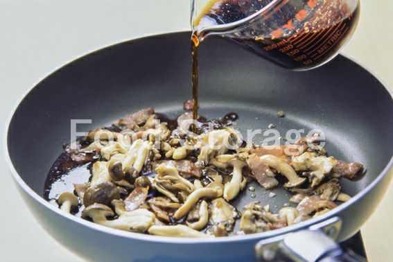 2にベーコン、しめじ、まいたけを加えて強火で炒め、Aを加える。ひと煮立ちしたらごはん、粉チーズを加えて1〜2分煮、バルサミコ酢を加えてさっと混ぜ、器に盛りパセリのみじん切りをふる。 |