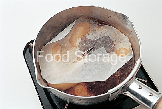 鍋にAの煮汁、1の戻し汁を入れて煮立てる。鶏手羽先、1の干ししいたけを加えて落としぶたをし、弱火で30分程煮詰める。