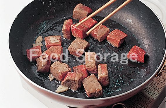 牛肉はひと口大に切り、塩、こしょうをふる。 |