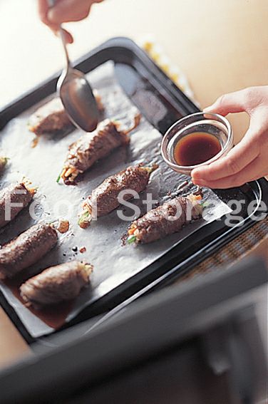 牛ロース薄切り肉は、広げて塩、こしょうをふる。 |