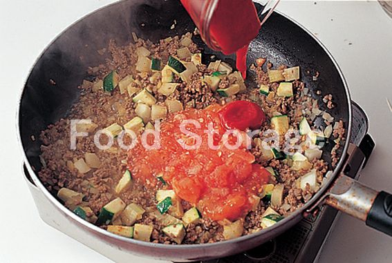 トマト(大) 玉ねぎ セロリ ズッキーニ 合いびき肉 オリーブ油 塩 こしょう カレー粉 A(トマトピューレ 砂糖 塩) 粉チーズ パセリ(みじん切り)