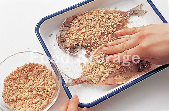 あじの身の部分に小麦粉を薄くまぶし、溶き卵を塗って1をまぶす。 |