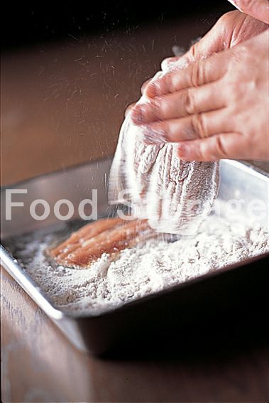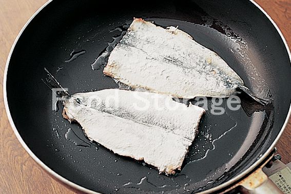 いわしは頭、腹ワタを取り除いて流水で洗い、手開きにして中骨を除き、薄力粉をまぶす。 |