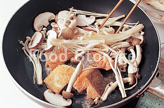 鮭は4等分に切り、塩、こしょうをふり、小麦粉をまぶす。 |