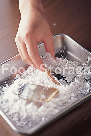 1の汁けをきって、片栗粉をまぶし、170℃の揚げ油でカラッと揚げる。 |