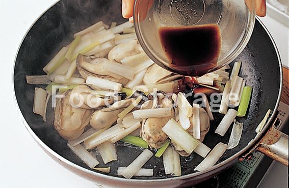 | かきと長ねぎの黒酢炒め |