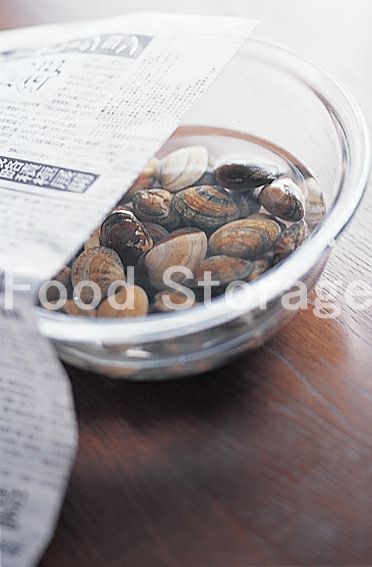 あさりは塩水に浸して砂出しし、流水でよく洗っておく。 |